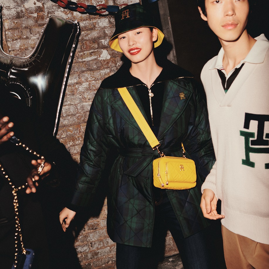Τα καρό Black Watch style κομμάτια με το νέο TH Monogram διαδραματίζουν κεντρικό ρόλο στην ανανεωμένη σειρά ανδρικών ρούχων, ενώ το εμβληματικό γυναικείο παλτό και το shirt dress βρίσκονται στο επίκεντρο, επανασχεδιασμένα με νέα υλικά για να ταιριάζουν στη σεζόν.