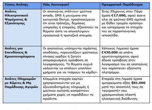 Ας δούμε τους πιο συνηθισμένους τύπους απάτης, μέσα από πραγματικά παραδείγματα, ώστε να κατανοήσουμε πώς λειτουργούν στην πράξη.