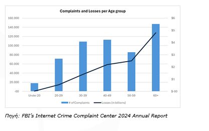 Παρότι θα φαινόταν λογικό ότι οι νεότερες ηλικίες, λόγω της εξοικείωσής τους με την τεχνολογία, θα ήταν οι κύριοι στόχοι τέτοιων απατών, τα δεδομένα δείχνουν το αντίθετο. Σύμφωνα με το IC3, σχεδόν το ένα τρίτο των καταγγελιών και περίπου το 40% των συνολικών οικονομικών απωλειών προήλθαν από θύματα άνω των 60 ετών. Το ίδιο ισχύει και για τις απάτες με κρυπτονομίσματα, όπου οι άνω των 60 αντιπροσωπεύουν επίσης το 40% των καταγεγραμμένων απωλειών. Παρότι οι μεγαλύτερες ηλικίες φαίνονται πιο ευάλωτες, οι απατεώνες δεν κάνουν διακρίσεις, στοχεύουν όποιον μπορούν. Αυτό σημαίνει ότι και οι νεότεροι πρέπει να είναι ιδιαίτερα προσεκτικοί. Στην ουσία όλοι πρέπει να παραμένουμε σε εγρήγορση και να προστατεύουμε τον εαυτό μας.