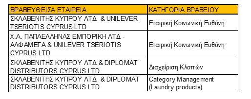 Στο πλαίσιο αυτό, βραβεύθηκαν οι πιο κάτω εταιρείες, στις κατηγορίες:
