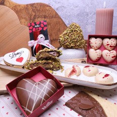 Η συλλογή περιλαμβάνει πολυτελείς προτάσεις όπως το Luxury Chocolate Box με σχήμα καρδιάς, το Pistachio Kataifi Finger, το Luxury Chocolate Turquaz, τα Seasonal Chocolate Boxes, αλλά και το Bueno Kataifi Heart Chocolate Box. Εξίσου εντυπωσιακά είναι τα Valentine Hearts με Kataifi & Rose Praline, το Pistachio Kataifi Heart, η σοκολάτα Salted Caramel, αλλά και το Double Heart Chocolate σε λευκή και γάλακτος σοκολάτα, δημιουργίες που εντυπωσιάζουν με την ποιότητά τους και την προσοχή στη λεπτομέρεια.