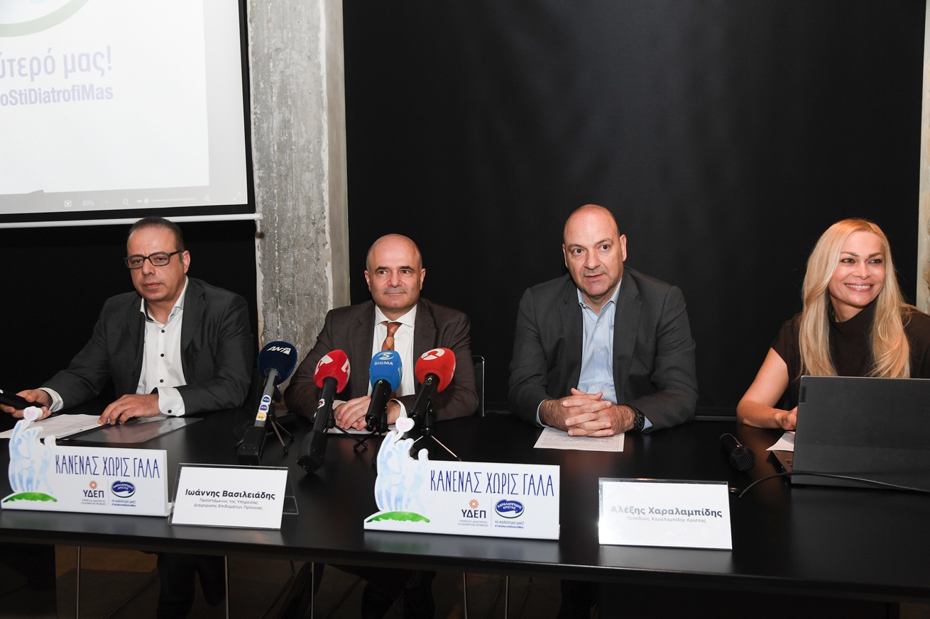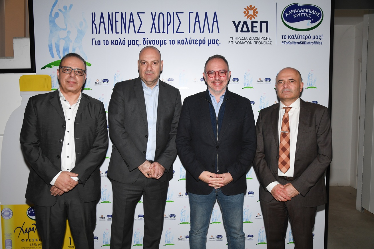 Η Χαραλαμπίδης Κρίστης, σε συνεργασία με την Υπηρεσία Διαχείρισης Επιδομάτων Πρόνοιας (ΥΔΕΠ) του Υφυπουργείου Κοινωνικής Πρόνοιας, παρουσίασε σε δημοσιογραφική διάσκεψη το διευρυμένο πρόγραμμα κοινωνικής προσφοράς «ΚΑΝΕΝΑΣ ΧΩΡΙΣ ΓΑΛΑ», το οποίο επεκτείνει τη στήριξη που παρείχε η εταιρεία σε παιδιά, στις ευάλωτες κοινωνικές ομάδες κάθε ηλικίας.
