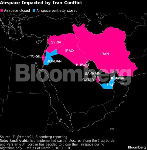 Σύμφωνα με στοιχεία της εταιρείας ανάλυσης αεροπορικών δεδομένων Cirium, από τις 36.000 πτήσεις που είχαν προγραμματιστεί προς ή από τη Μέση Ανατολή από τις 28 Φεβρουαρίου, περισσότερες από τις μισές έχουν ακυρωθεί. Αυτό μεταφράζεται σε περίπου 4,4 εκατομμύρια διαθέσιμες θέσεις που χάθηκαν.